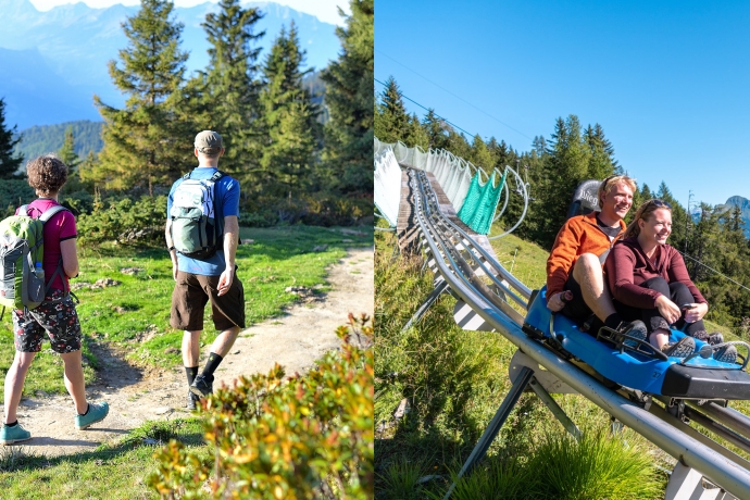 Bei der Dreibündenstein Genusswanderung gibt es nebst Rundwanderticket ein Churer Picknick Säckli mit auf den Weg und bei der Genusswanderung mit Pfiff lockt ein 3-Gang Bündner Menü und eine Rodelabfahrt.