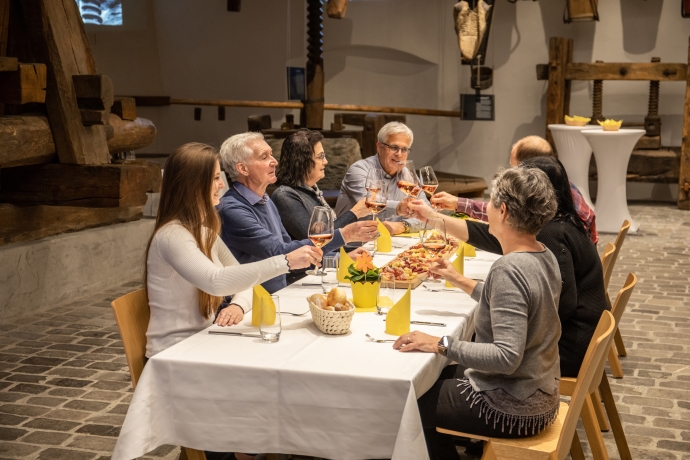 Erfahren Sie mehr über römische Einflüsse, Bündner Rebsorten und historische Torkel. Im Weinbaumuseum vertiefen Sie Ihr Wissen durch Exponate und eine Filmdokumentation. Den Abschluss bildet eine Weinprobe mit drei lokalen Weinen und feinen Bündner Häppchen.